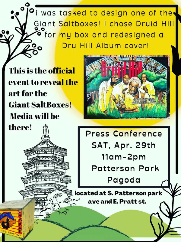 I decided to base the design for my Giant Saltbox on the group Dru Hill which was named after Druid Hill Park. I changed the title to ‘Druid Hill’ instead of ‘Dru Hill’ and shifted the phrase to ‘enter the park’ instead of ‘enter the Dru’.